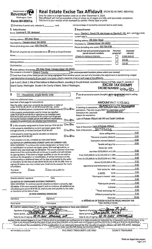 | Mailing Address: | VALERIE G VERANGO-WILCOCK 368 COE ST COUPEVILLE, WA 98239 | % Ownership: | 100.0000000000% |