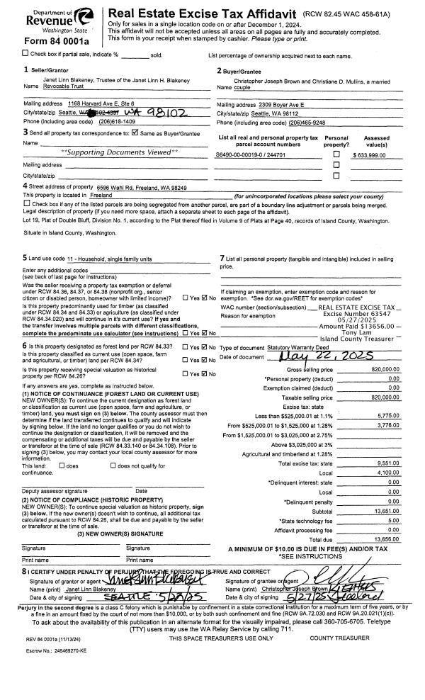| Mailing Address: | 1974 BANJO DR COUPEVILLE, WA 98239 | % Ownership: | 100.0000000000% |