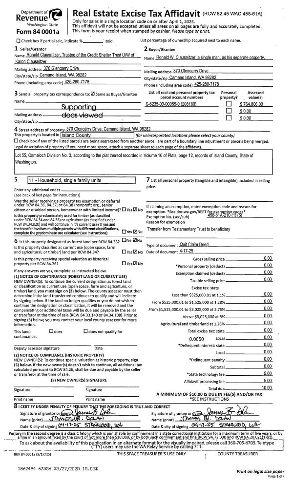 | Mailing Address: | 387 LEDGEWOOD BEACH RD COUPEVILLE, WA 98239-9602 | % Ownership: | 100.0000000000% |