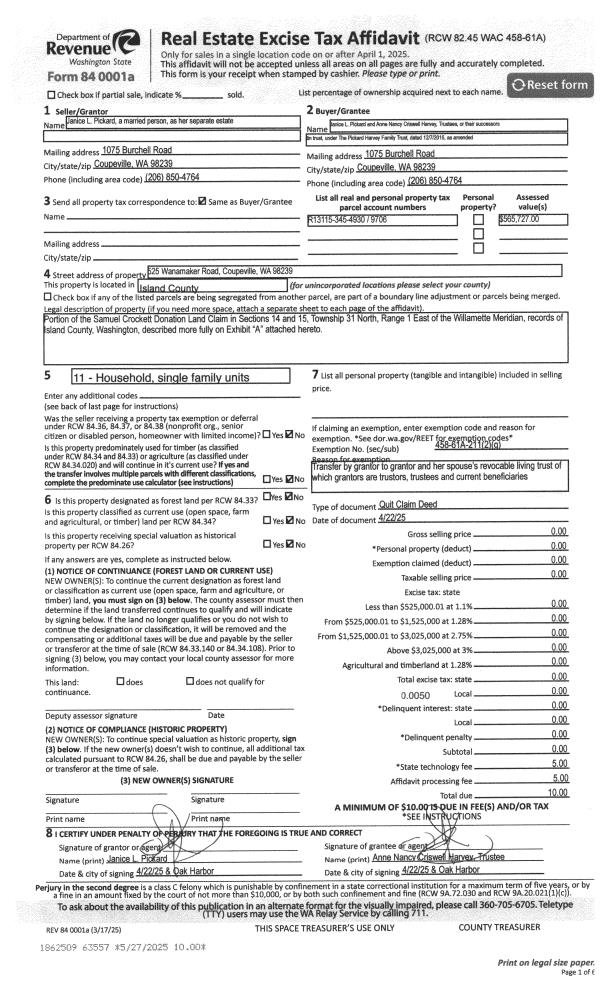 | 1 | 09/27/2005 | QCD | Quit Claim Deed | WELLANDER, LUCILLE M | WELLANDER, JEFFREY R | | | $0.00 | 55941 | 4155454 |