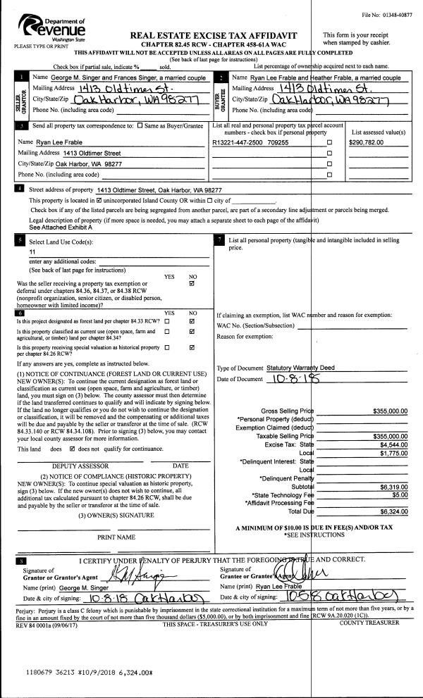 | Mailing Address: | 1940 VIRGINIA AVE COUPEVILLE, WA 98239 | % Ownership: | 100.0000000000% |