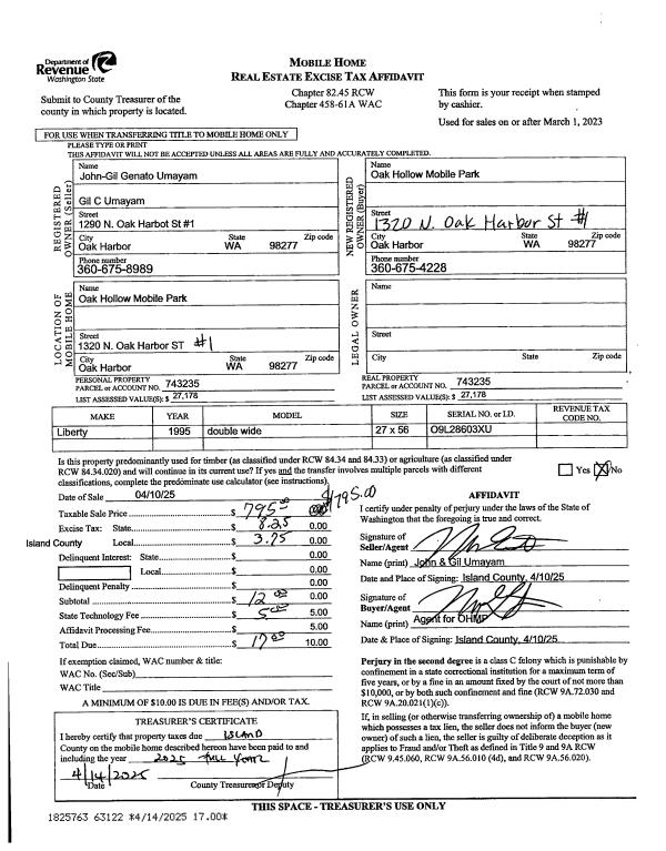 | Mailing Address: | BRIANDA VASQUEZ 1914 DONNA DR COUPEVILLE, WA 98239 | % Ownership: | 100.0000000000% |