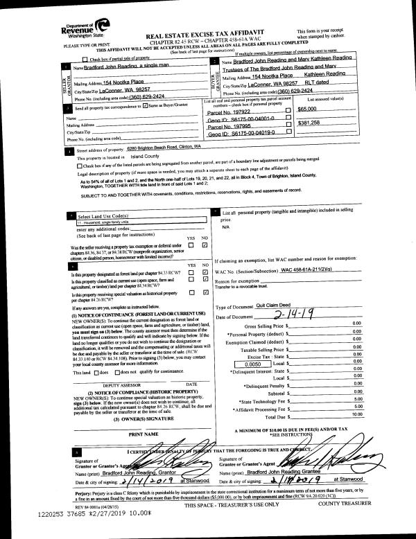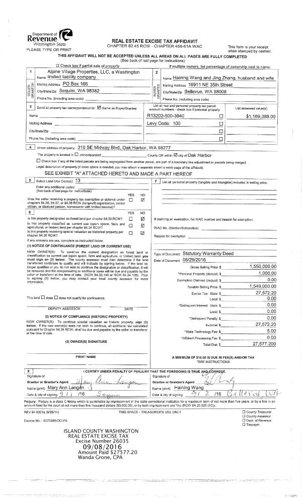 | Mailing Address: | 1910 DONNA DR COUPEVILLE, WA 98239 | % Ownership: | 100.0000000000% |