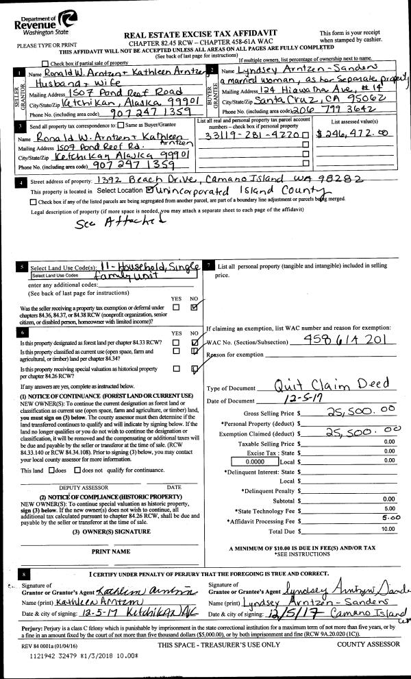 | Mailing Address: | 1915 VIRGINIA AVE COUPEVILLE, WA 98239 | % Ownership: | 100.0000000000% |
