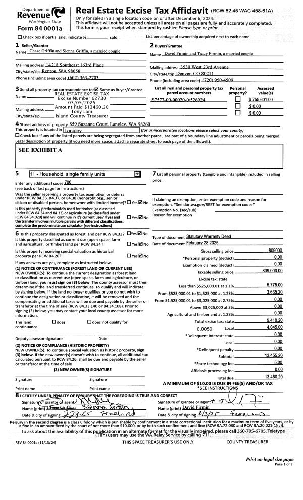 | Mailing Address: | 1931 VIRGINIA AVE COUPEVILLE, WA 98239 | % Ownership: | 100.0000000000% |