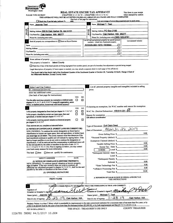 | Mailing Address: | JEANETTE HIGGINS 460 COX DRIVE COUPEVILLE, WA 98239 | % Ownership: | 100.0000000000% |