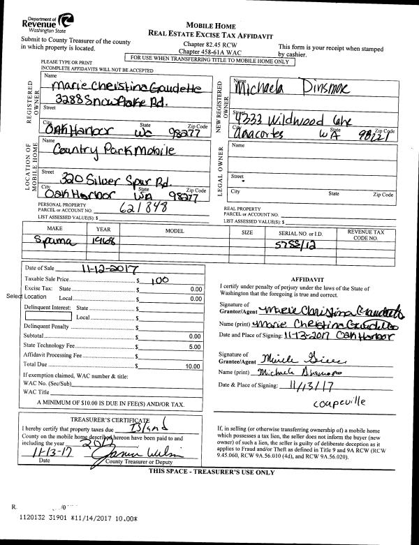 | Mailing Address: | CHELSEA TUMULTY 492 COX DR COUPEVILLE, WA 98239 | % Ownership: | 100.0000000000% |
