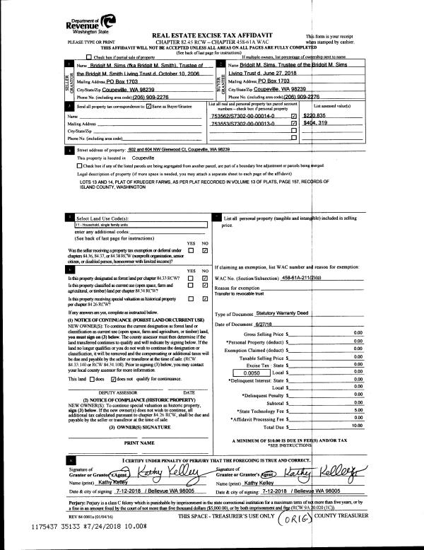 | Mailing Address: | 540 SW BARRINGTON DRIVE OAK HARBOR, WA 98277 | % Ownership: | 100.0000000000% |