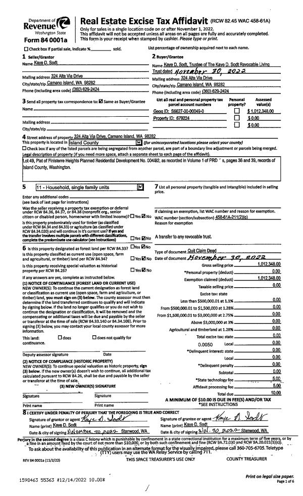| Mailing Address: | KATE L HAMILTON 1418 BONNIE VIEW ACRES RD OAK HARBOR, WA 98277 | % Ownership: | 100.0000000000% |