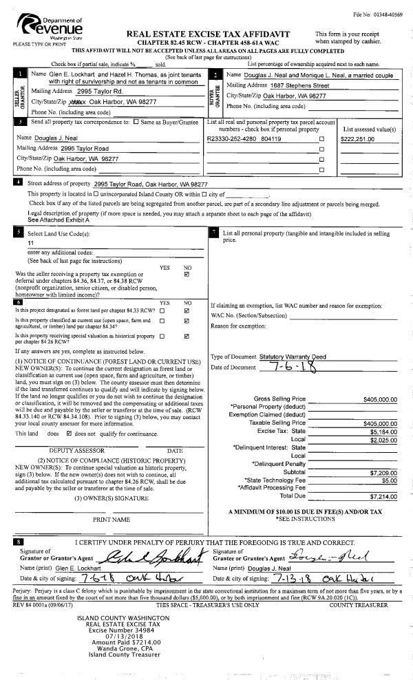 | 1 | 12/12/2022 | EZ | Easement | SHORT, JASON W | ISLAND COUNTY PUBLIC WORKS | | | $0.00 | 55727 | 4556207 |