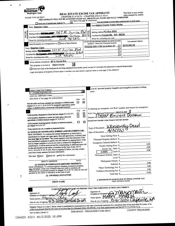 | Tax Area: | 719 - APPRAISER-S Whid Schl Dist, outside Langley, vacant & 50 acres or less | Land Use Code | 99 |