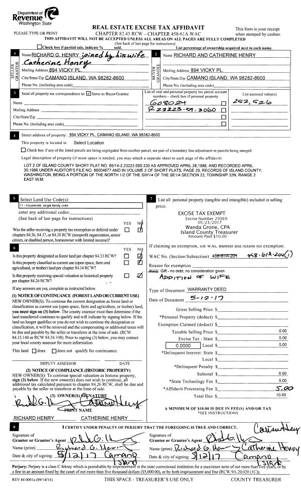 | Mailing Address: | KEVIN R KAMERER 2497 BRETLAND RD CAMANO ISLAND, WA 98282 | % Ownership: | 100.0000000000% |