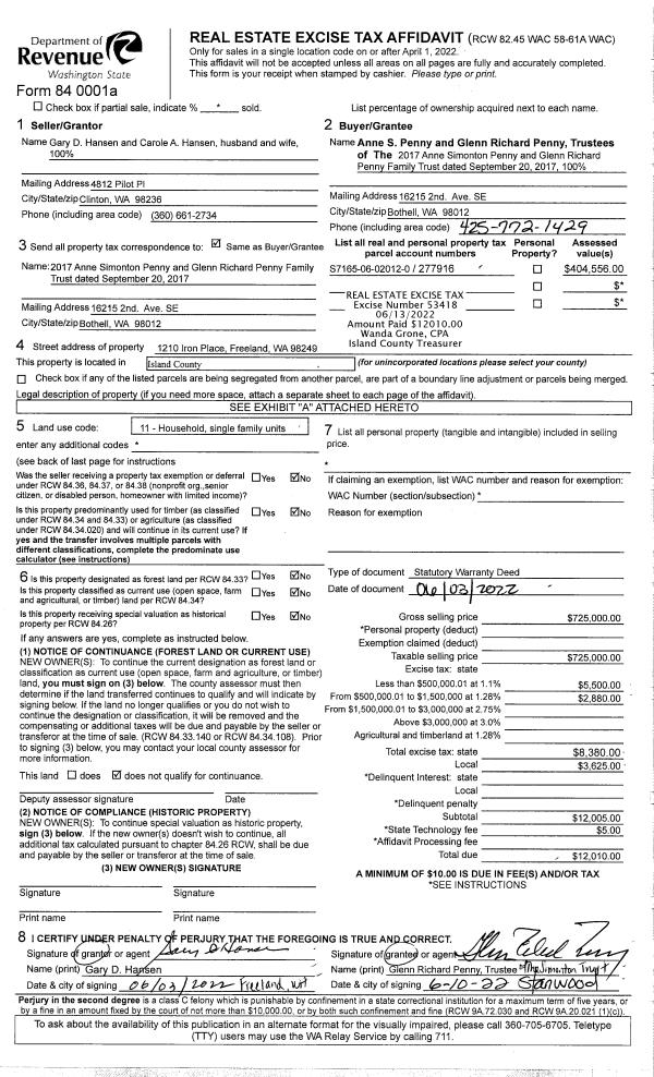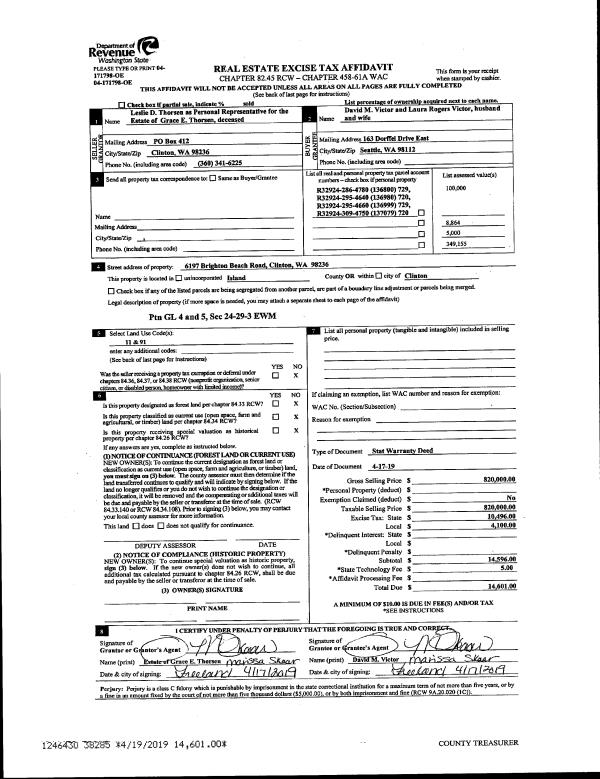 | Mailing Address: | DEBBIE HUBERT-LESLIE 951 PORT SUSAN TERRACE RD CAMANO ISLAND, WA 98282 | % Ownership: | 100.0000000000% |