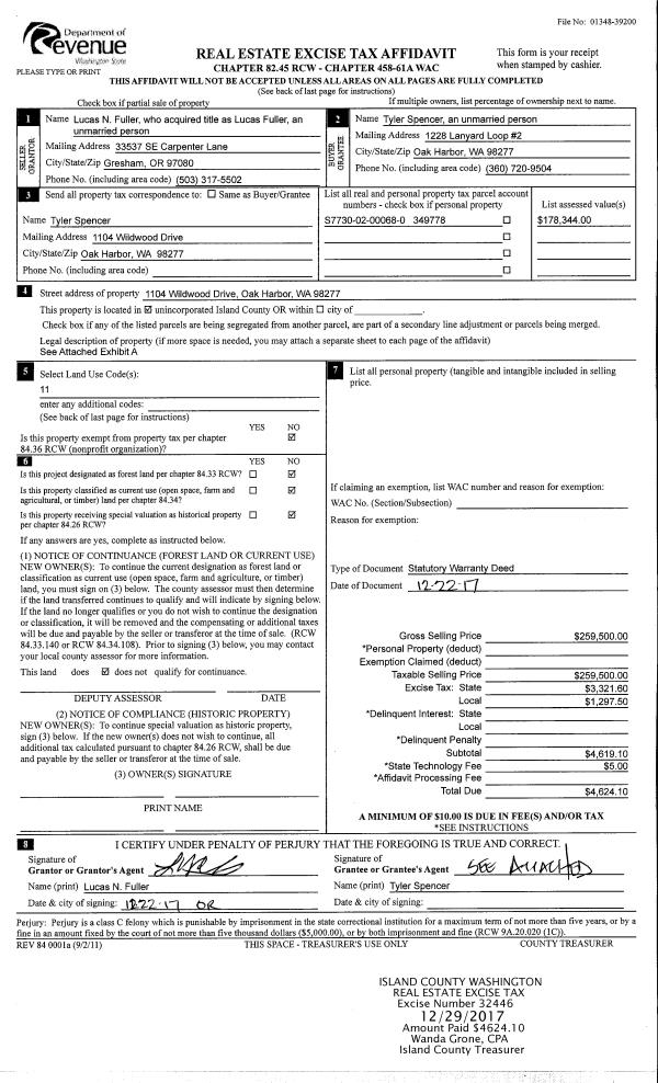 | Mailing Address: | AMANDA C CARTER 446 SW 8TH AVE OAK HARBOR, WA 98277 | % Ownership: | 100.0000000000% |