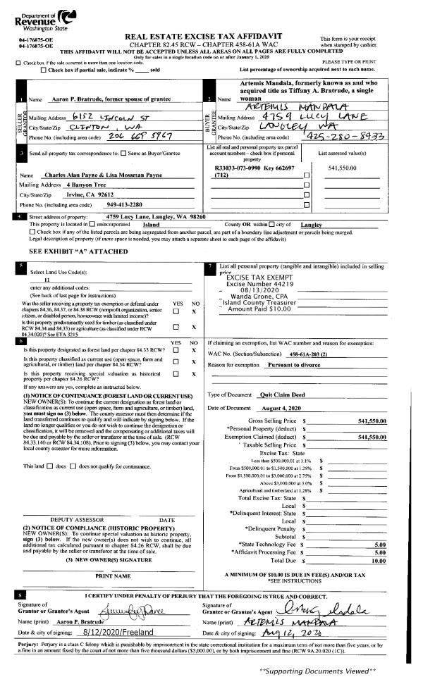 | Mailing Address: | MARK STEVEN HORN (1/3) 283 SW 8TH AVE OAK HARBOR, WA 98277 | % Ownership: | 100.0000000000% |