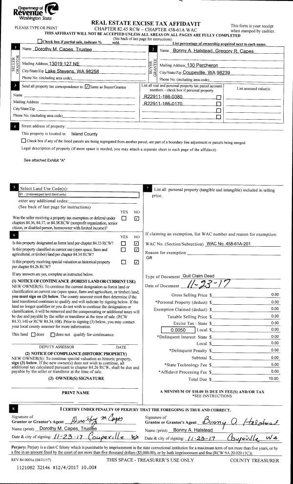 | Mailing Address: | VALERIE A KENDRICK 255 SW 8TH AVE OAK HARBOR, WA 98277 | % Ownership: | 100.0000000000% |