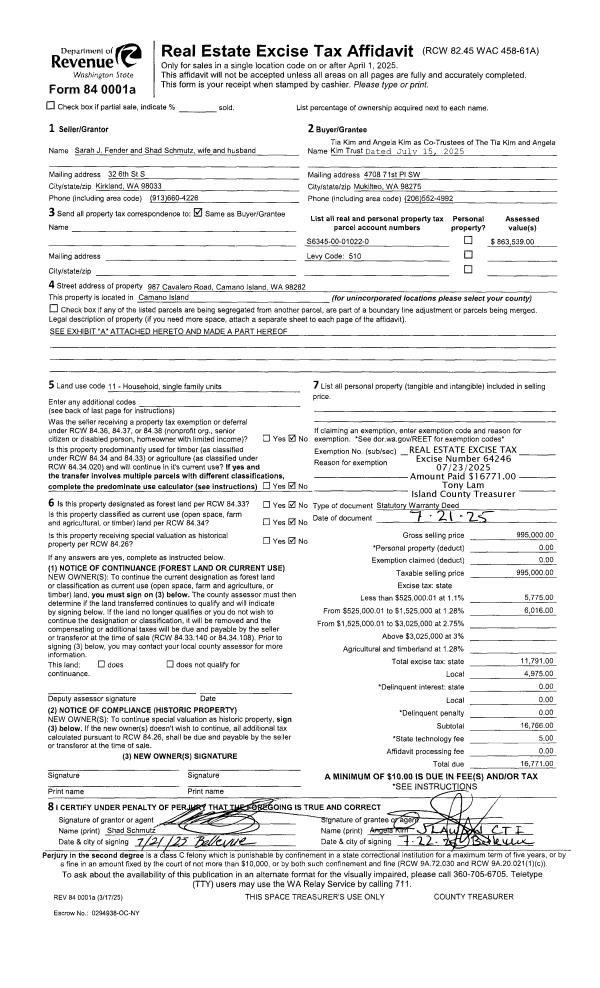| Mailing Address: | MASON O'CONNELL 254 SW 10TH AVE OAK HARBOR, WA 98277 | % Ownership: | 100.0000000000% |