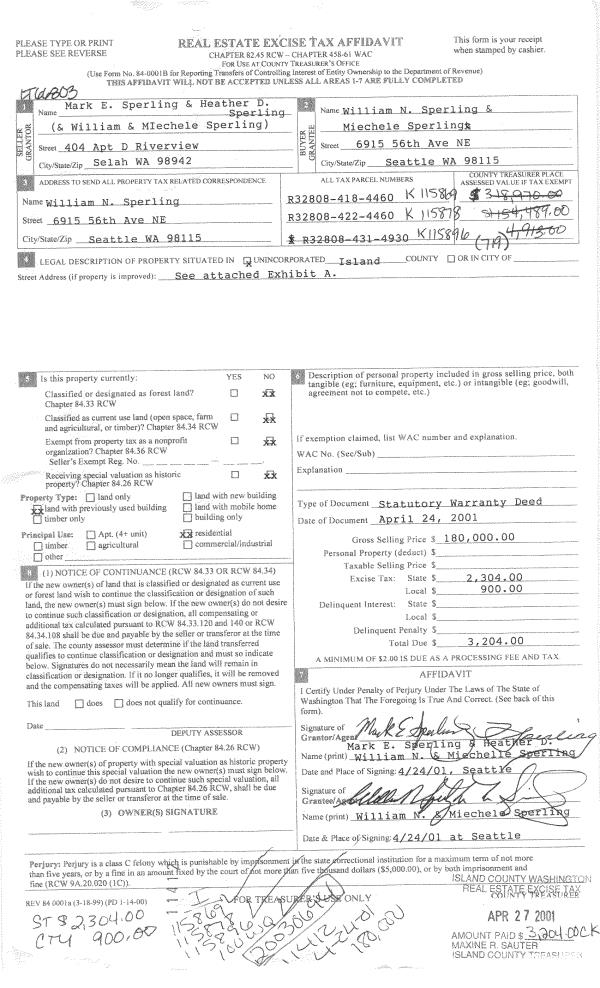 | Mailing Address: | 85 VISTA DEL MAR ST CAMANO ISLAND, WA 98282 | % Ownership: | 100.0000000000% |
