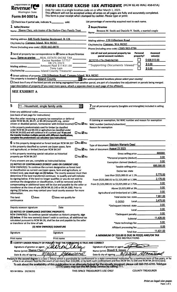 | Mailing Address: | 1035 AQUA VISTA LN CAMANO ISLAND, WA 98282 | % Ownership: | 100.0000000000% |