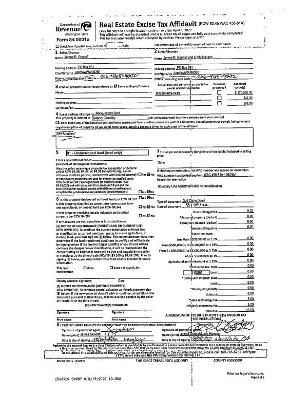 | Mailing Address: | 1087 VISTA DEL MONTE ST CAMANO ISLAND, WA 98282 | % Ownership: | 100.0000000000% |
