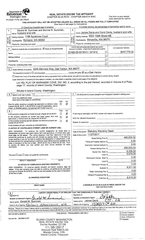 | Mailing Address: | RANDI KOIS 4937 SCURLOCK RD FREELAND, WA 98249 | % Ownership: | 100.0000000000% |
