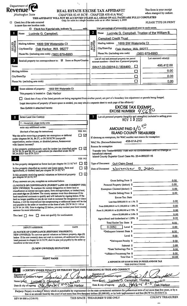 | Mailing Address: | 371 SUSANA DR FREELAND, WA 98249-9748 | % Ownership: | 100.0000000000% |