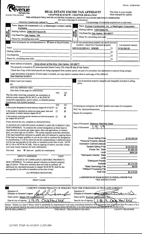 | Tax Area: | 719 - APPRAISER-S Whid Schl Dist, outside Langley, vacant & 50 acres or less | Land Use Code | 99 |