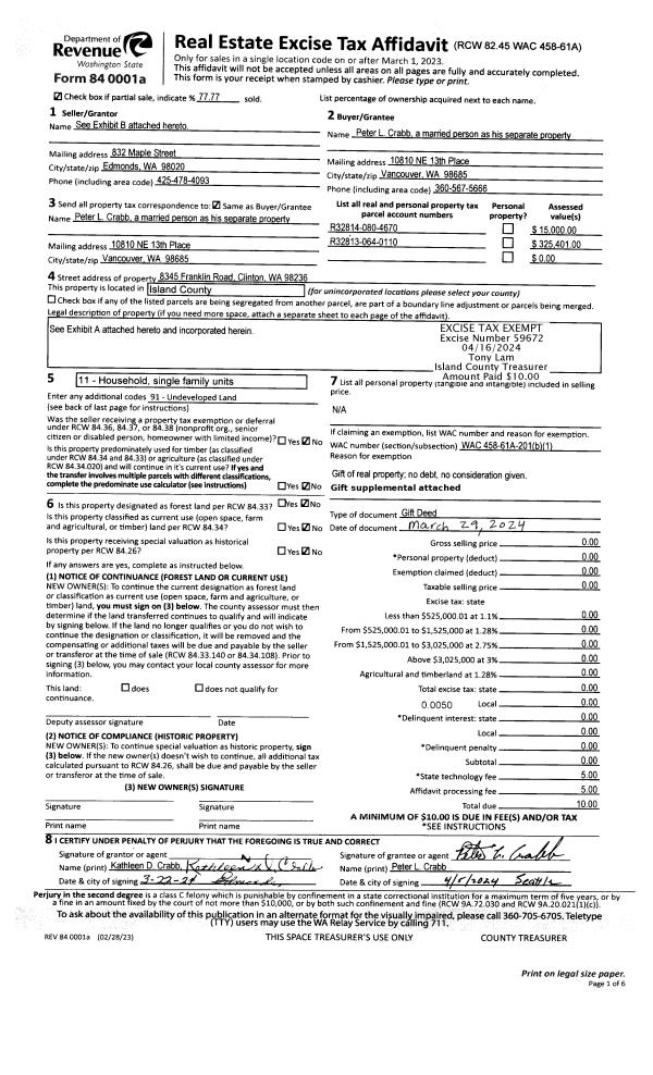 | Mailing Address: | 512 DOLPHIN DR FREELAND, WA 98249 | % Ownership: | 100.0000000000% |