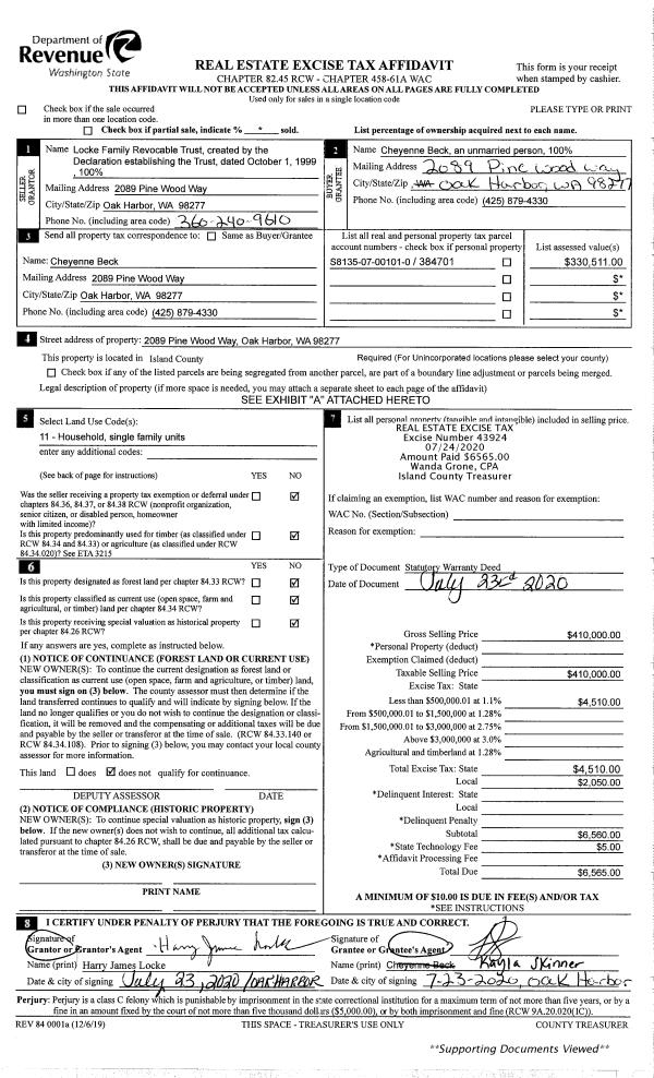 | 3 | 09/01/1979 | EXECUTORD | Executor Deed | HUCKLE, GEORGE S | HANSEN, AKSEL J | | | $6,000.00 | 94465 | 358525 |