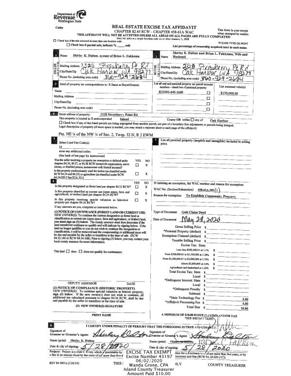 | Mailing Address: | 571 SHIPPING VIEW DR FREELAND, WA 98249-9624 | % Ownership: | 100.0000000000% |