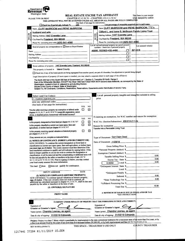 | Mailing Address: | 316 SE PIONEER WAY PMB 222 OAK HARBOR, WA 98277 | % Ownership: | 100.0000000000% |