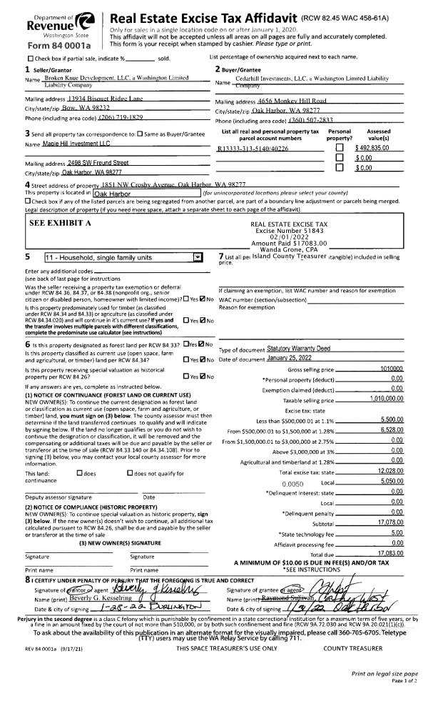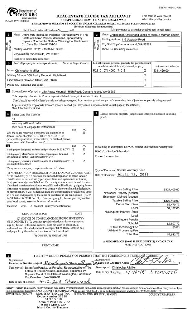 | 6 | 02/27/2012 | TTAXD | Treasurer's Tax Deed | ISLAND COUNTY TREASURER | REAL PROPERTY FUNDING GROUP LLC | | | $0.00 | 6951 | 4310636 |