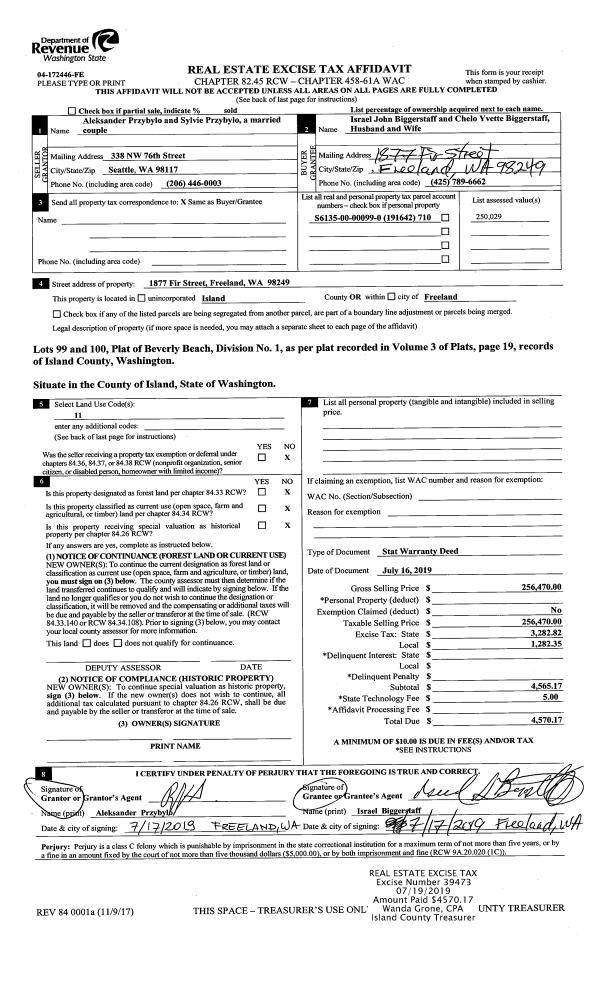 | Mailing Address: | 314 LOCHWOOD DR CAMANO ISLAND, WA 98282 | % Ownership: | 100.0000000000% |