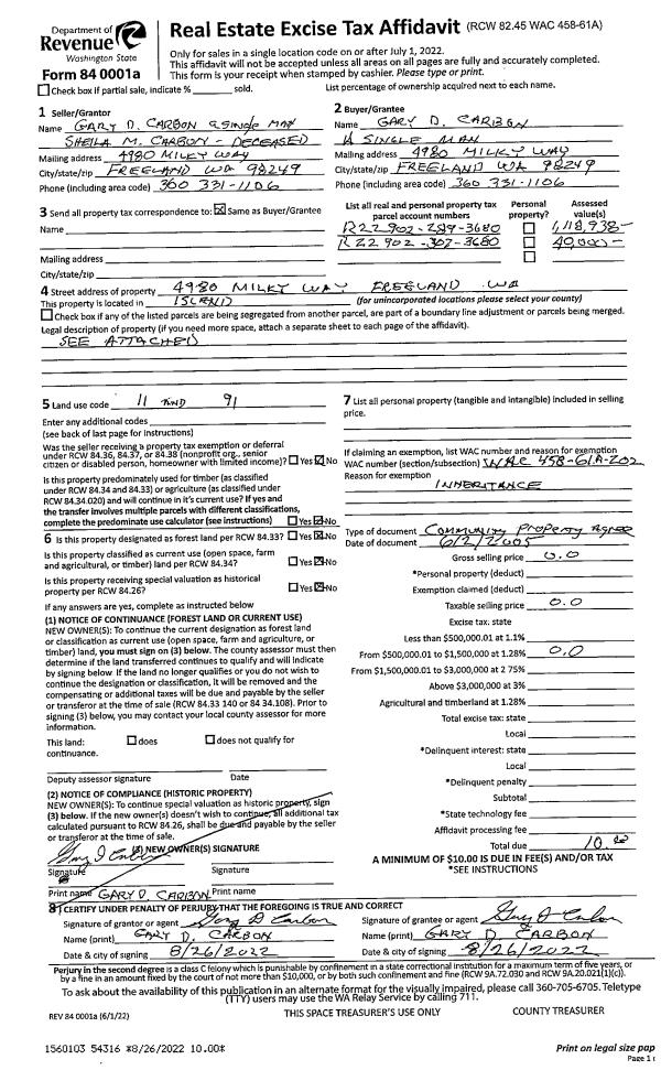 | Mailing Address: | LINDA K WILLIAMS 284 CAMALOCH DR CAMANO ISLAND, WA 98282 | % Ownership: | 100.0000000000% |
