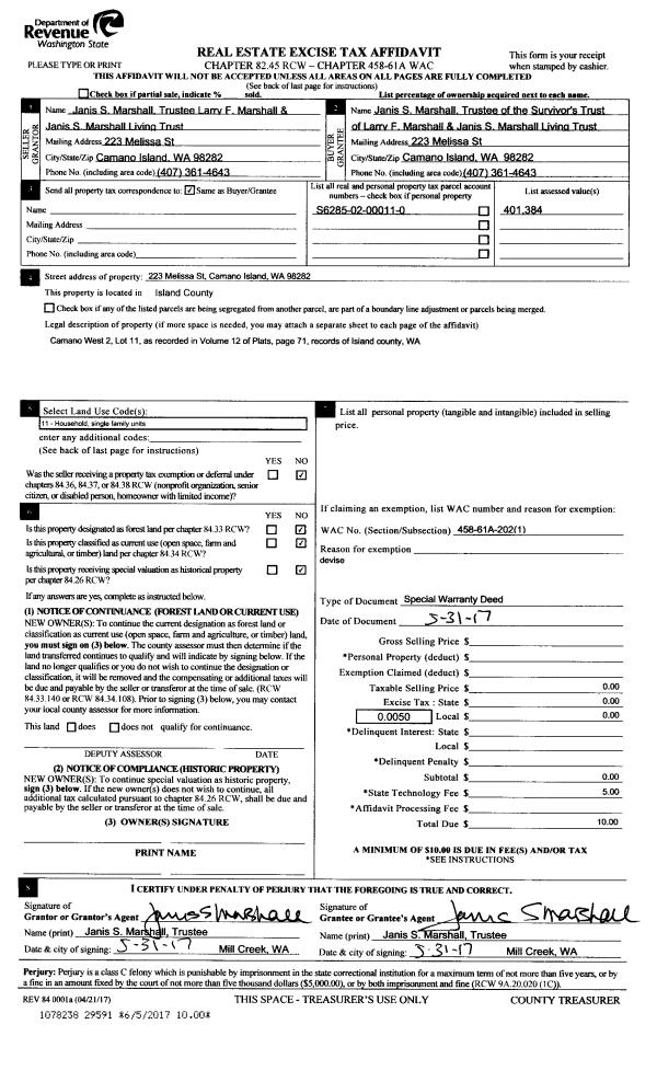 | Mailing Address: | JEANA MCDONALD 237 CAMALOCH DR CAMANO ISLAND, WA 98282 | % Ownership: | 100.0000000000% |