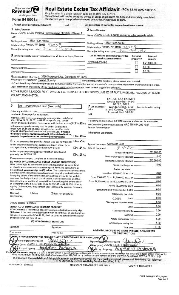 | Mailing Address: | 253 MACKENZIE DR CAMANO ISLAND, WA 98282 | % Ownership: | 100.0000000000% |