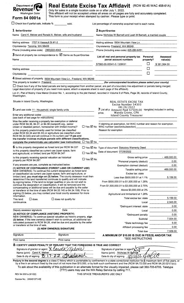 | Mailing Address: | 241 MACKENZIE DR CAMANO ISLAND, WA 98282 | % Ownership: | 100.0000000000% |