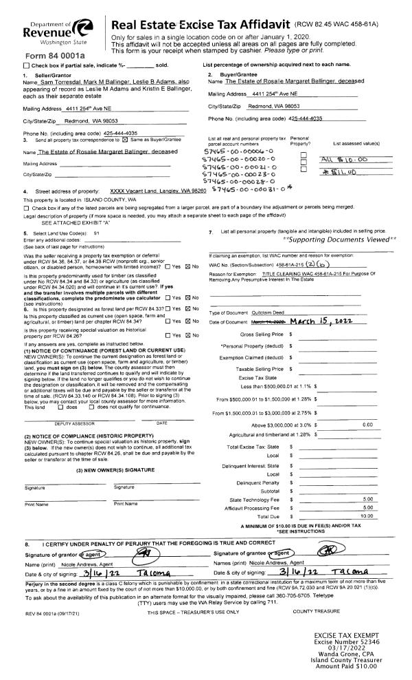 | Mailing Address: | 276 EDINBURGH DR CAMANO ISLAND, WA 98282 | % Ownership: | 100.0000000000% |
