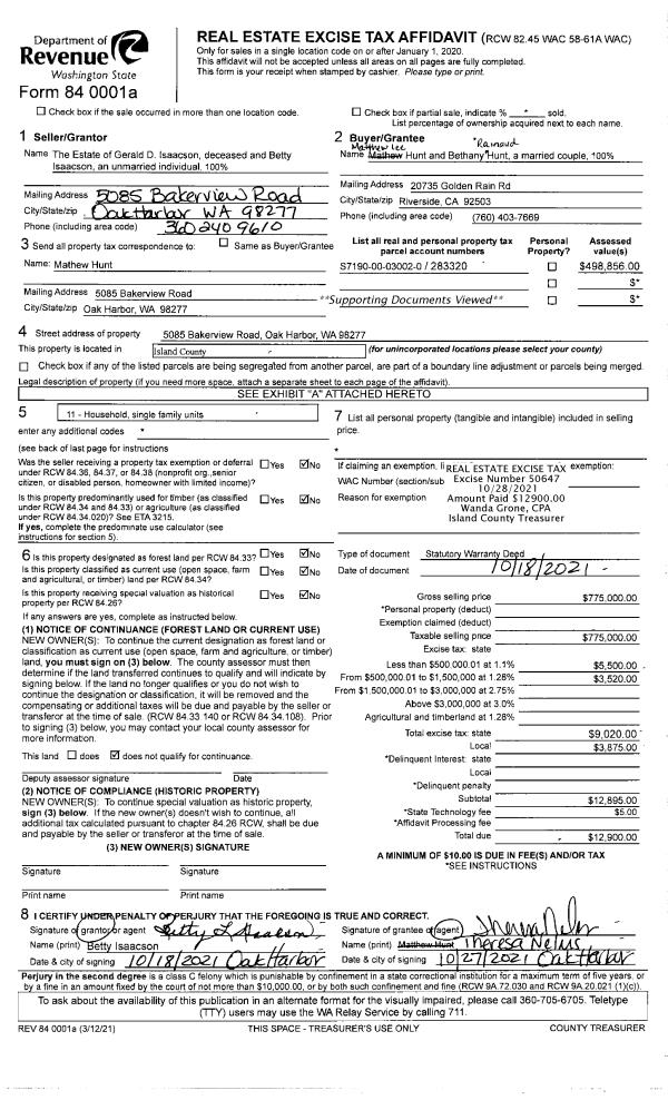 | 4 | 06/11/2021 | WD | Warranty Deed | GETTY, PATRICK H & E JOY | SCHOT, HARALD N. | | | $451,000.00 | 48735 | 4522151 |