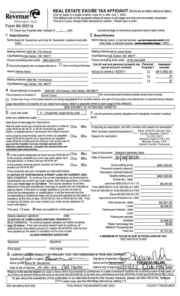 | Mailing Address: | 340 SCOTLAND DR CAMANO ISLAND, WA 98282 | % Ownership: | 100.0000000000% |