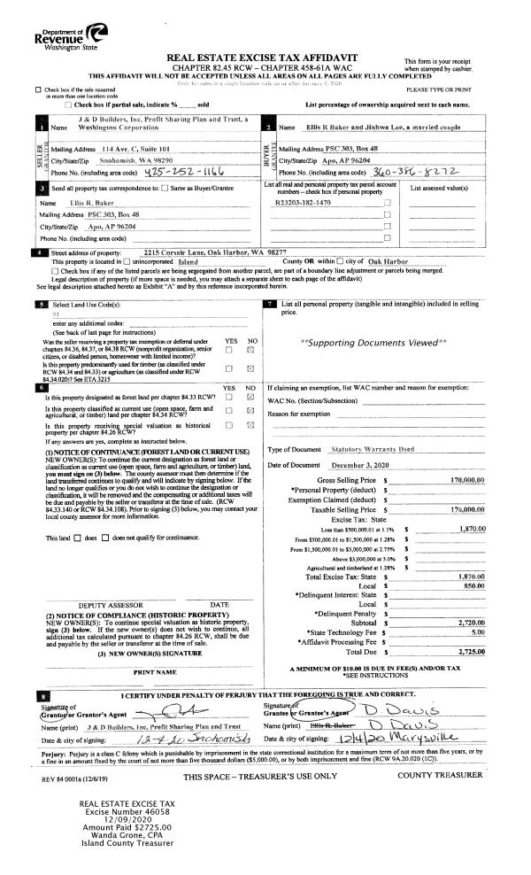 | Mailing Address: | 32226 256TH ST NW STANWOOD, WA 98292 | % Ownership: | 100.0000000000% |
