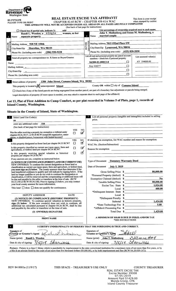| Mailing Address: | JANE E MOSTELLER 378 SELKIRK DR CAMANO ISLAND, WA 98282-8734 | % Ownership: | 100.0000000000% |