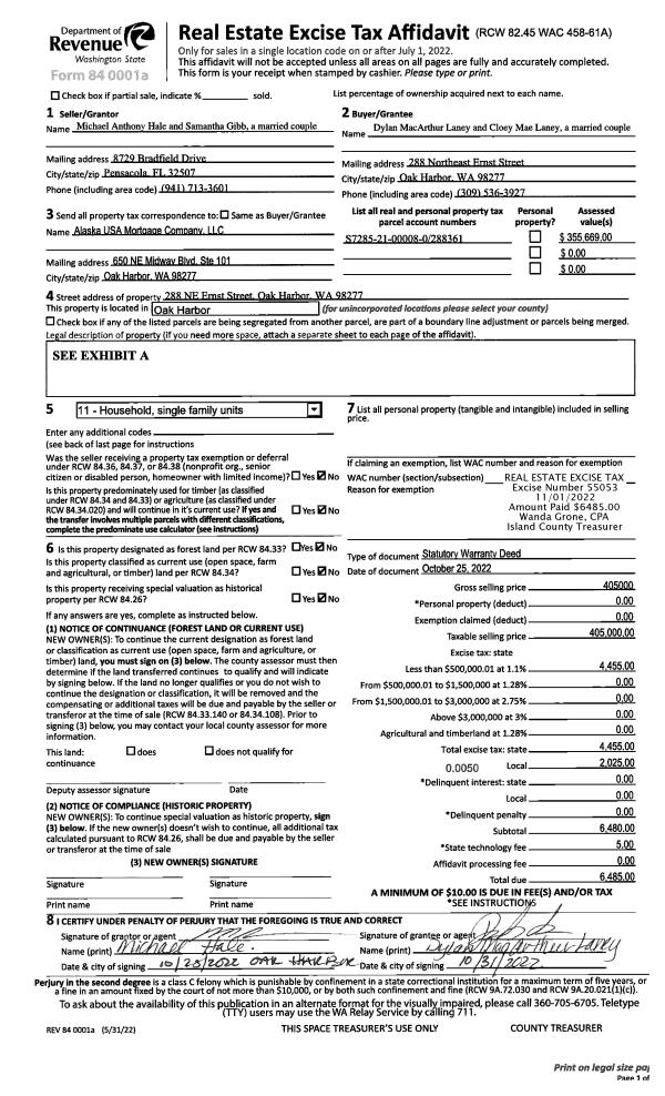 | 3 | 09/20/2010 | WD | Warranty Deed | NORTH PUGET SOUND CONSTRUCTION LLC | FRED E LEAMER | | | $70,000.00 | 2345 | 4281281 |