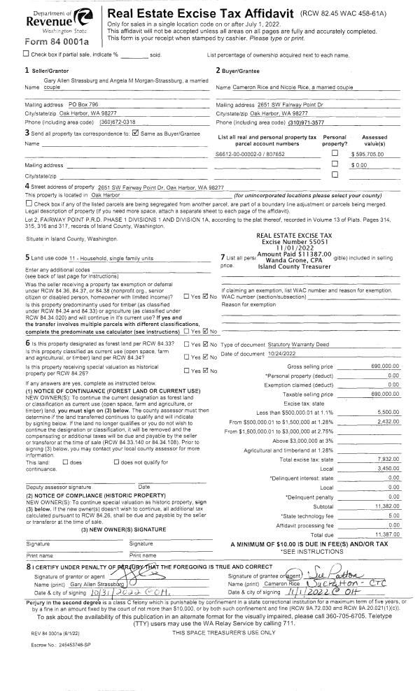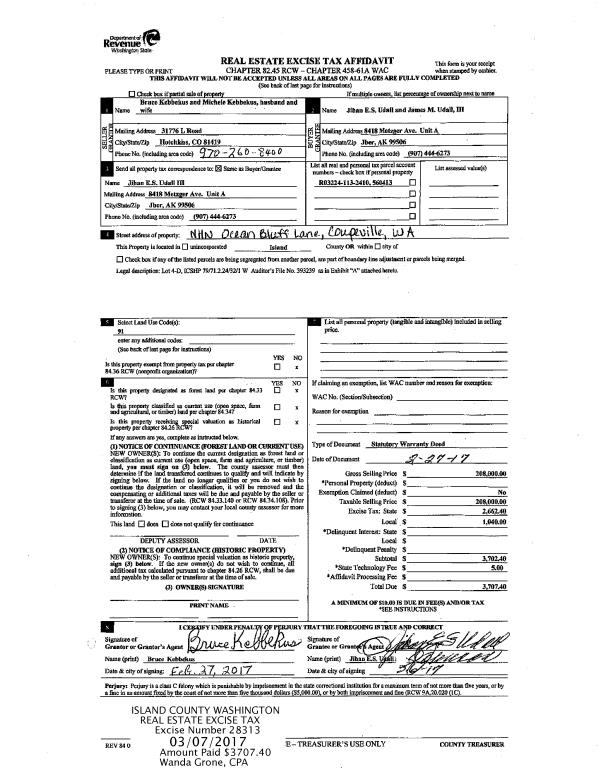 | Mailing Address: | 341 HEATHER DR CAMANO ISLAND, WA 98282 | % Ownership: | 100.0000000000% |