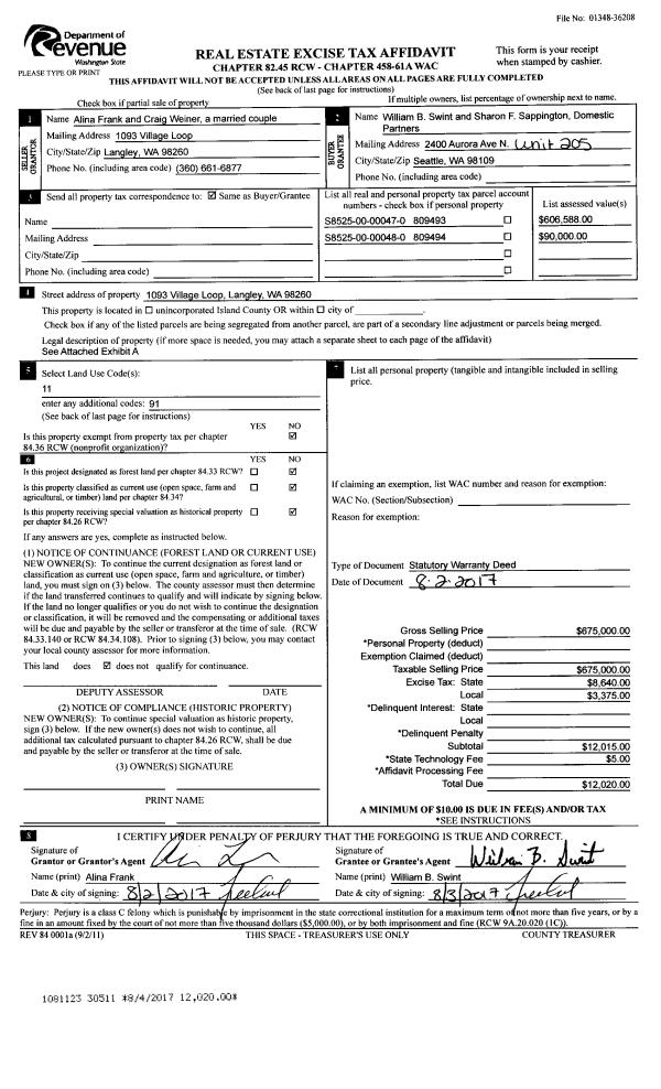 | Mailing Address: | 491 STIRLING DR CAMANO ISLAND, WA 98282 | % Ownership: | 100.0000000000% |