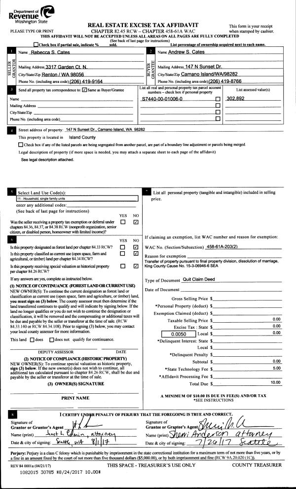 | Mailing Address: | 343 ROBERTS WAY CAMANO ISLAND, WA 98282 | % Ownership: | 100.0000000000% |