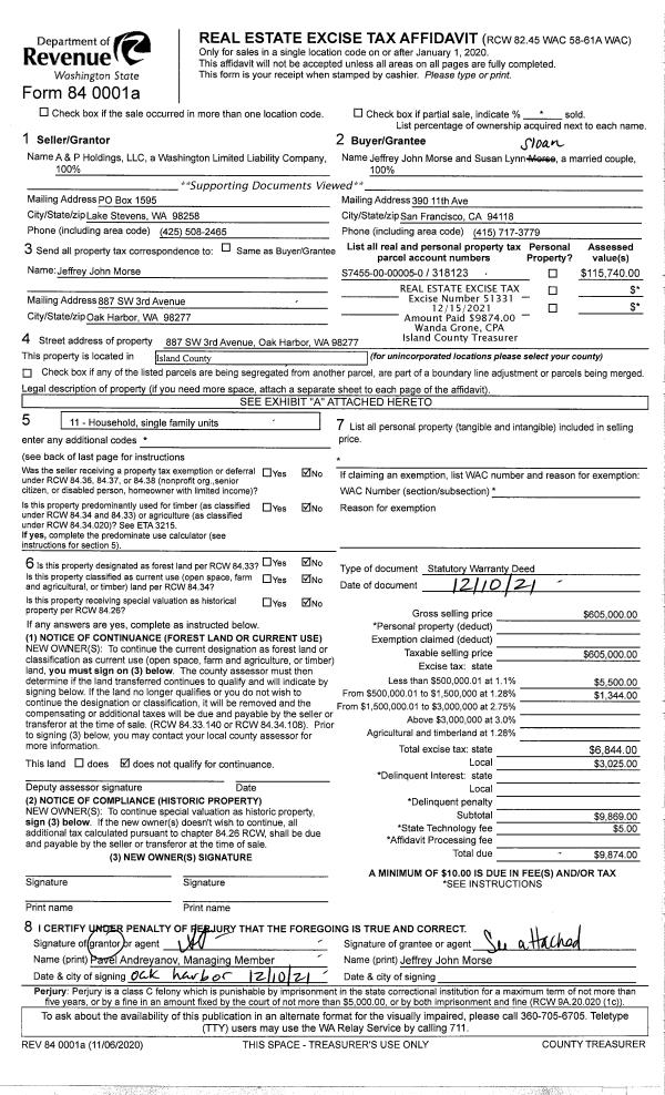 | Mailing Address: | JOYCE E PETERSON 337 DUNBAR LN CAMANO ISLAND, WA 98282-8731 | % Ownership: | 100.0000000000% |