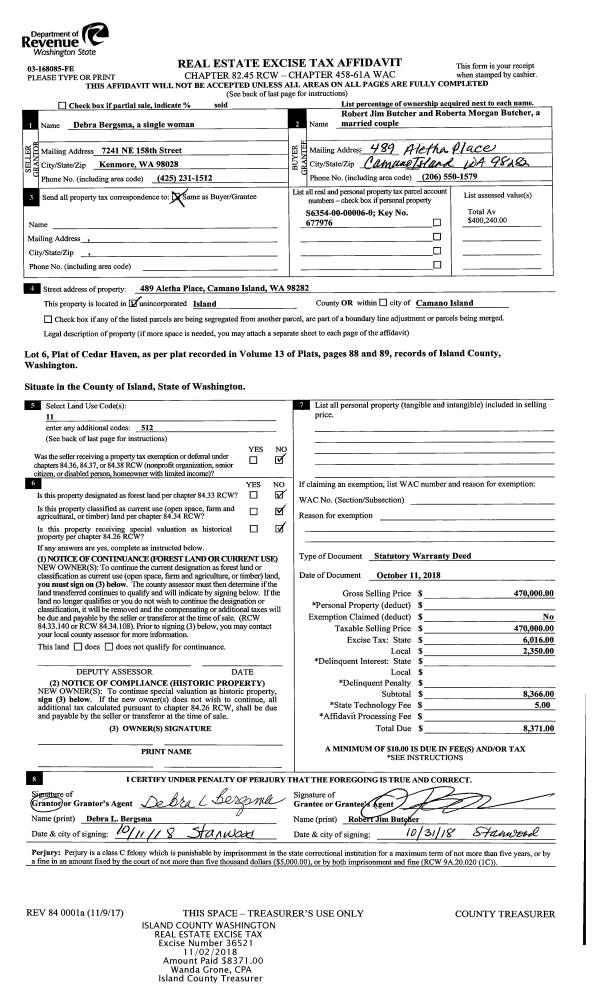| Mailing Address: | JENNIFER MUNSON 450 TAM O SHANTER DRIVE CAMANO ISLAND, WA 98282 | % Ownership: | 100.0000000000% |