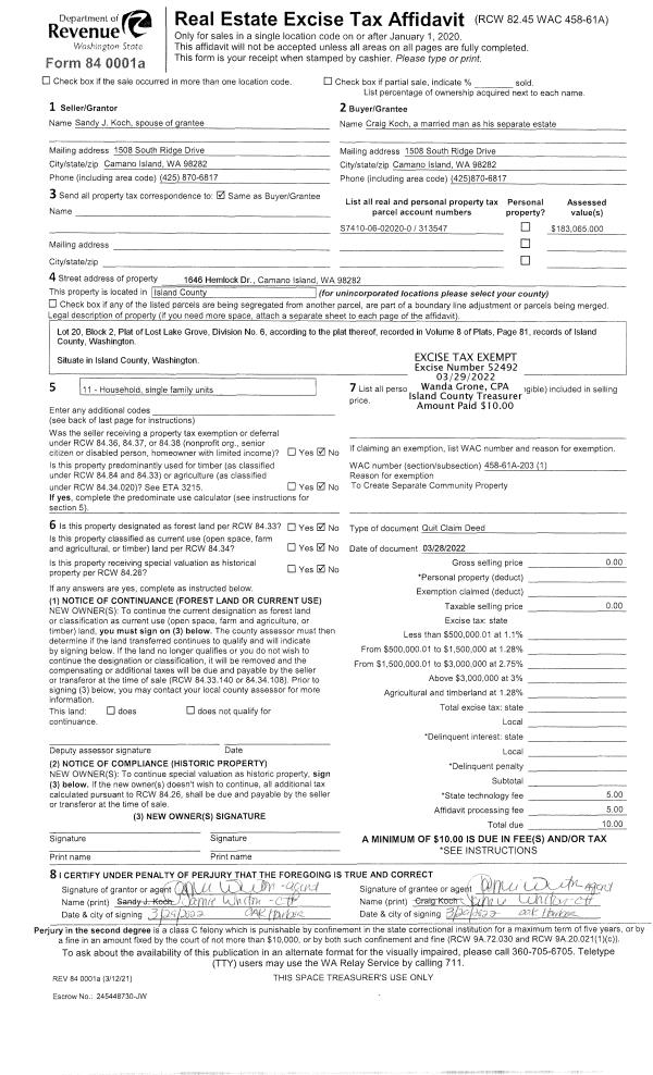 | Property ID: | 209358 | Abbreviated Legal Description: | CAMANO SL3 IN MILL RES & IN SEC 15-31-2E INCL ADJ TIDES AS DESC 115D245 EX N47' OF S200' OF N330' |