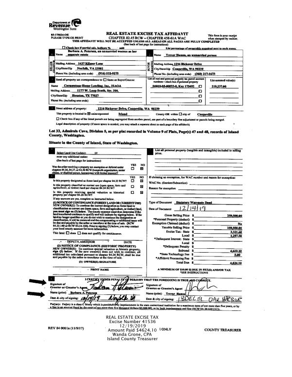 | Mailing Address: | WILLIAM A WIPER SUSAN HART 717 N SUNSET DR CAMANO ISLAND, WA 98282 | % Ownership: | 100.0000000000% |